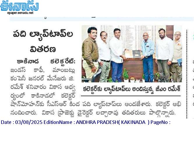 INDUS COFFEE SPONSORED LAPTOPS NEWS